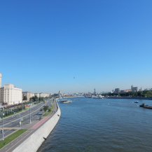 I saw Moscow under a blue cloudless sky, perfect visibility and the odd evening thunderstorm to clear the air. I walked a lot. My route into the centre was via the footbridge which joins Komsomolski Prospect and Gorky Park.